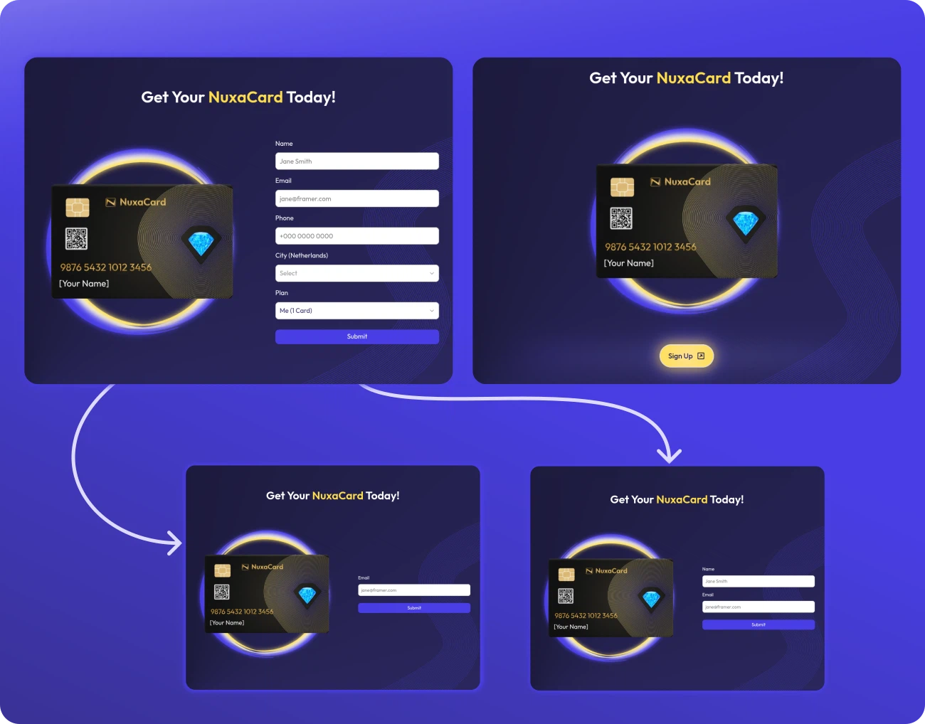 Several NuxaCard components include individual variants for different screen sizes, ensuring a great experience whether you’re on desktop or mobile.